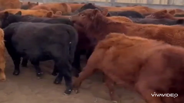 TERNEROS DESTETADOS SE PESAN EN BALANZA DE CAMIÓN CON EL 3% 5 ANGUS NEGROS 7 ANGUS COLORADOS