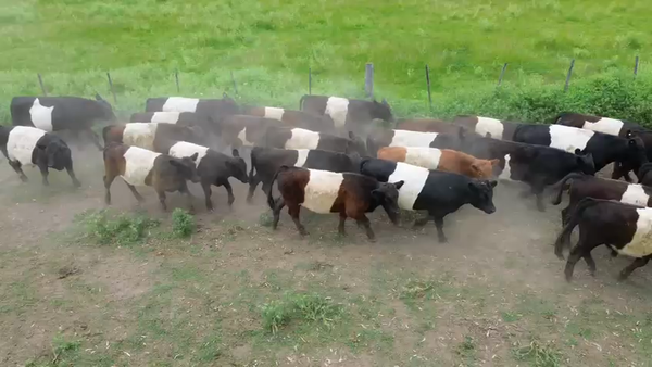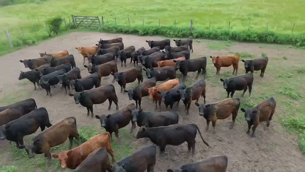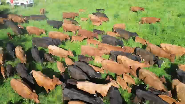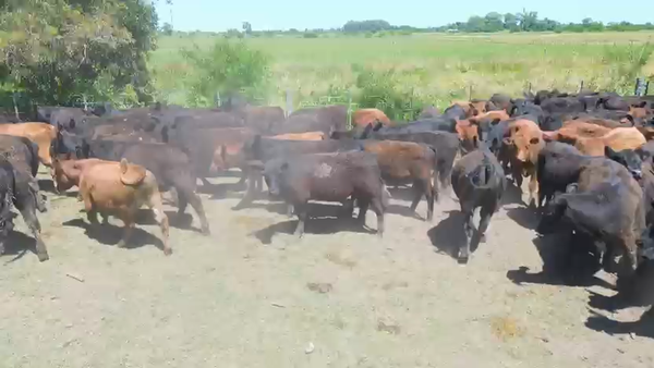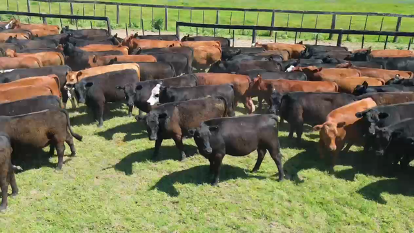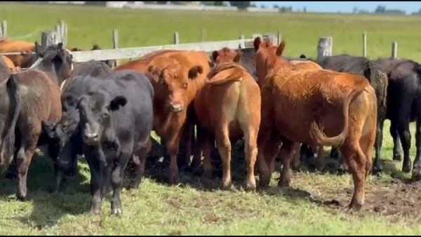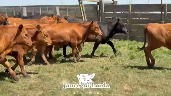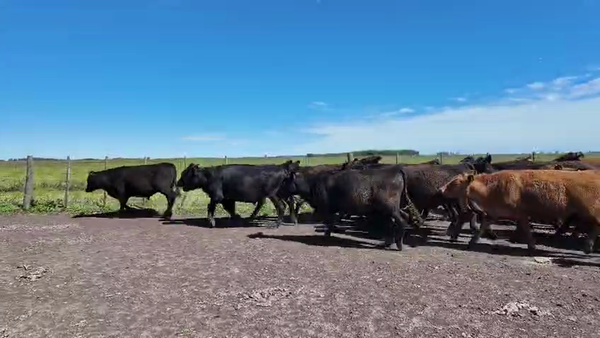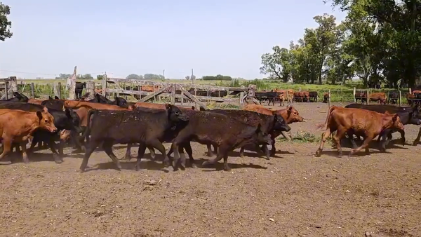 Hay un ternero fajado en el lote, resto negros y colorados, muy buen lote de machos.