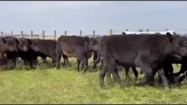 Angus negro, tres jaulas doble piso (hay 66 colorados en lote siguiente) Destetados, saben comer ración, actualmente a campo. Hay terneros curados de los ojos. Ubicados en Vieytes (Magdalena) Se pesan en Vieytes (SRM) abajo, con el 3% de desbaste
