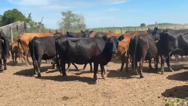 En el lote hay 22 coloradas y 38 negras. Servicio mayo/junio/julio. Vaca nacida en 2021/2022. En el lote hay 12, Vacas de 8 dientes recién cortados, 39 de 6 dientes y 9 de 4 dientes