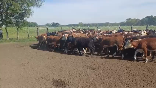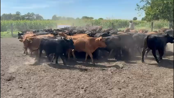 Paricion otoño/invierno, hay una vaca colorada careta resto negras, se cargan desde la feria de Brandsen.
