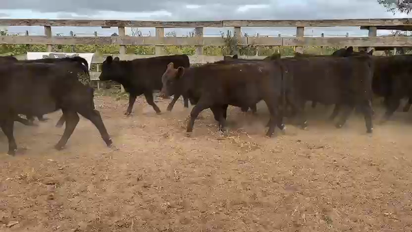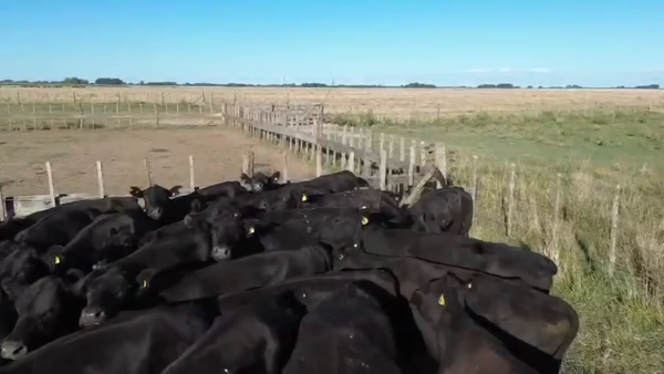 Terneros lote de cabeza, hijos de IATF con toro Cunin, se pesan con el 3% de desbaste a 50km del campo.